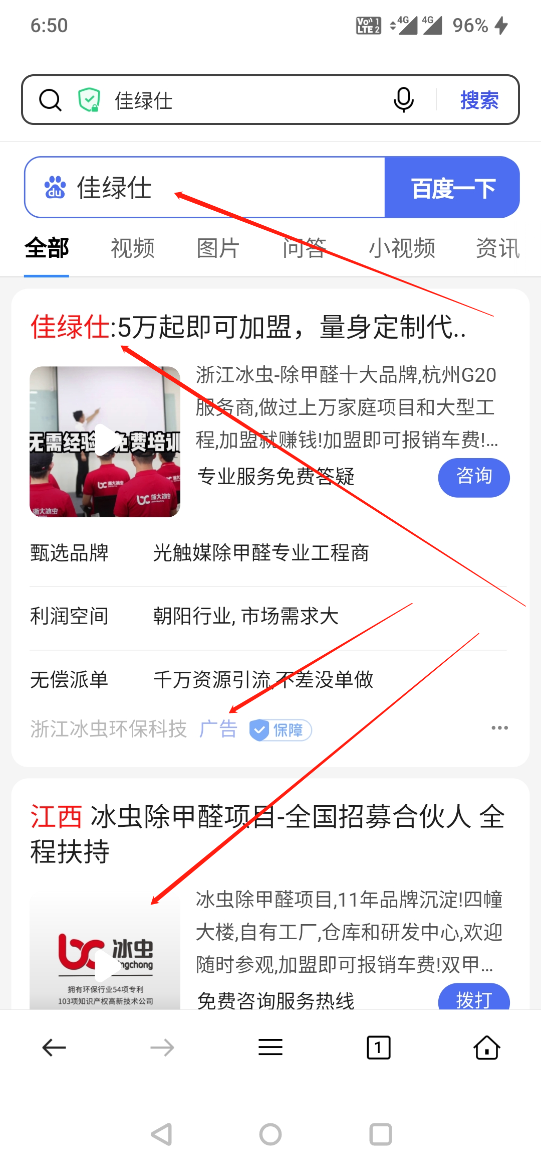 浙江冰蟲環保科技有限公司利用我司商標"佳綠仕"進行百度搜索關鍵詞宣傳,嚴重影響我司合法權益。